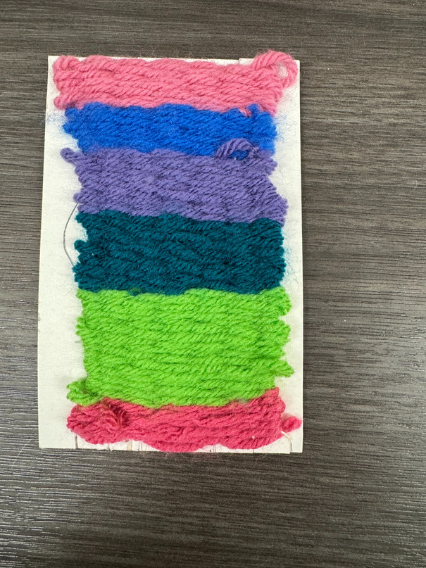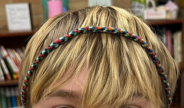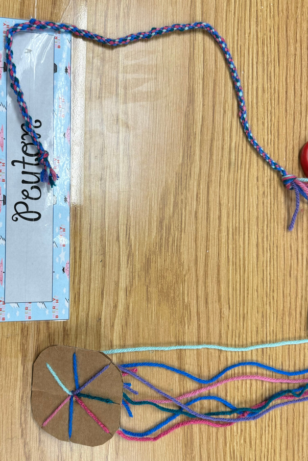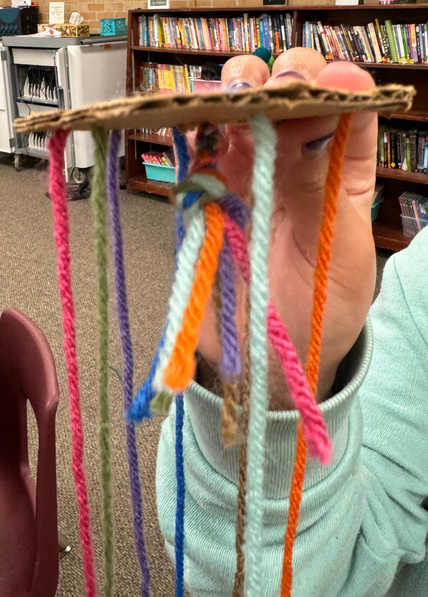 Students learned a new technique using cardboard, scissors, and yarn. Beautiful bracelets were made as well as necklaces and a headband! Thanks, Carter:)