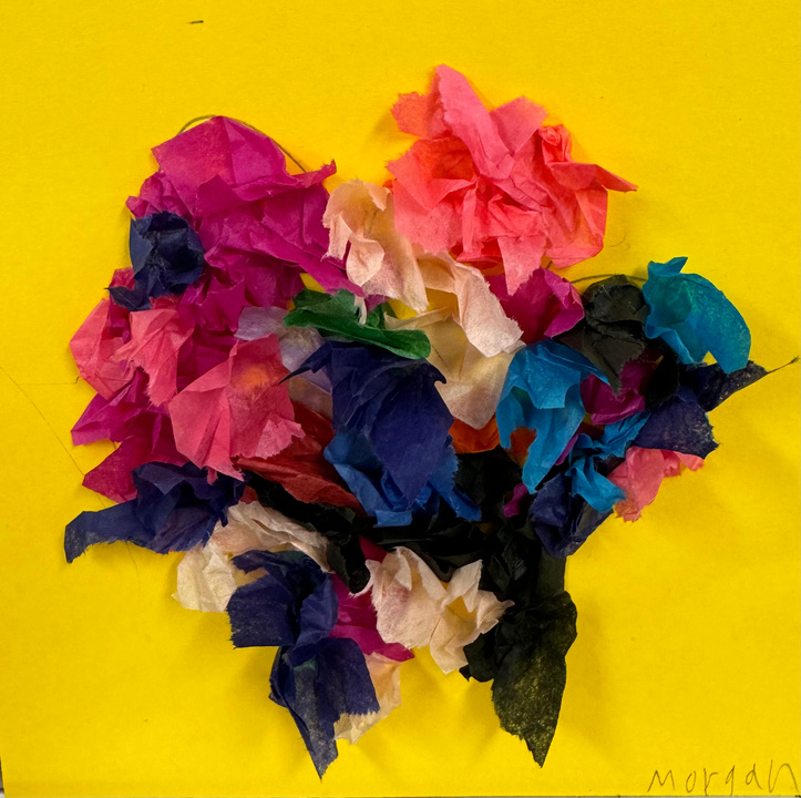 More springtime flowers created using colorful tissue paper, glue, and the end of a pencil. The texture is incredible!