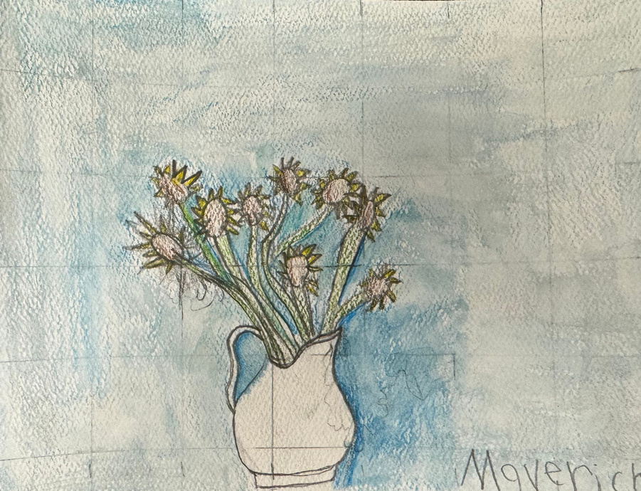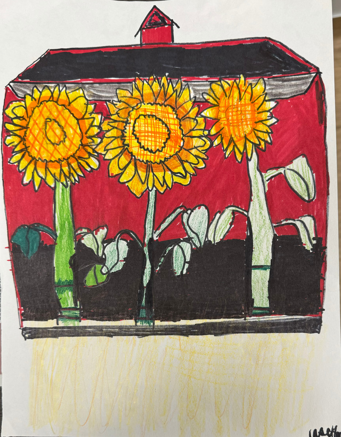 Students also studied a bit of vanGough, making their own sunflower.