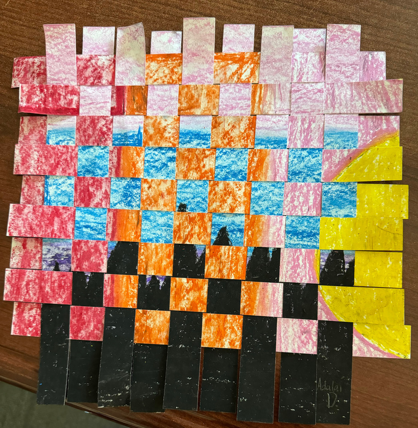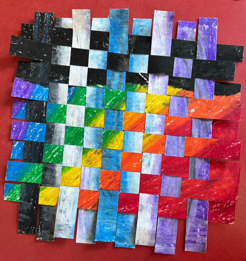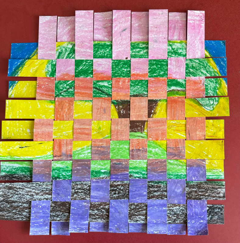 1st and 2nd graders will be working on weaving skills this month, starting with paper weaving using complementary colors. We will add string weaving to complete the unit.