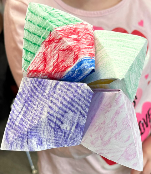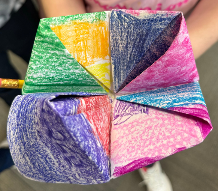textures, students folded an origami fortune teller, making a