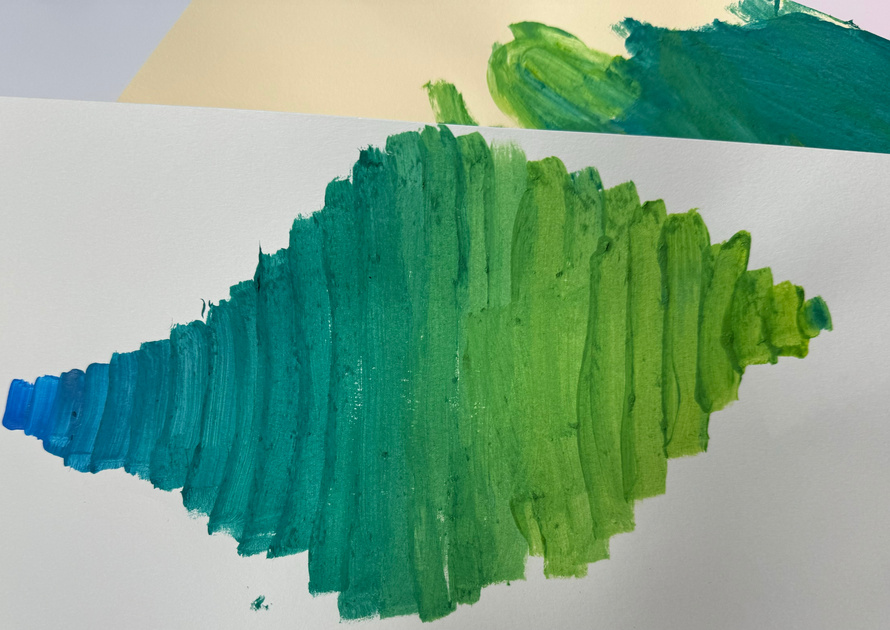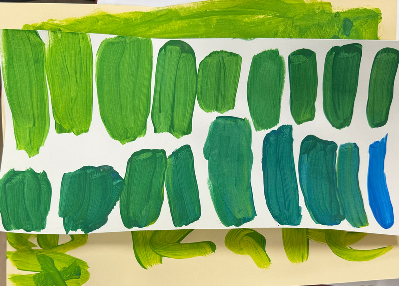 First paint in the new room for EL! Third grade experimented with the wide range of color value when just adding a small amount of a primary color to another primary color. Yellow and blue do not make just ONE green; yellow and red do not make just ONE orange! Our purples were not so promising as the red was not a true red. Amazing learning experience for all:)