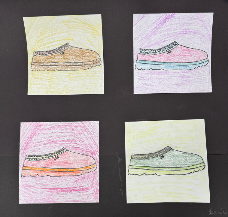 Andy Warhol was studied as well as Pop Art. Students drew a popular image, then used