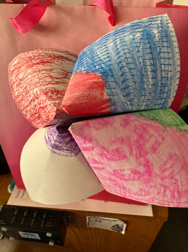 of colors around a cardboard heart, giving it